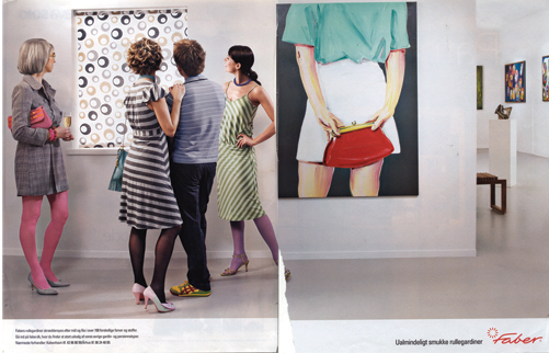 3. Evo Wessell, collectorIn the first of two sets of work contributed to the show, Michael Baers has inserted gallery advertisements into mainstream art magazines, keeping them within the context of the publication. They employ recursive strategies, mimicking the design interface of the galleries chosen, but detourning the accustomed usage of gallery advertisement from communicating information (show announcements) to suggesting gallery ads as a space for public service announcements. This usage suggests the liminal space galleries occupy between public and private. In the second, he has created three stencils which are hypothetical guerilla advertisements for the website, artnet.de. The images are taken from the website, portraying well-known individuals at public events in Berlin.