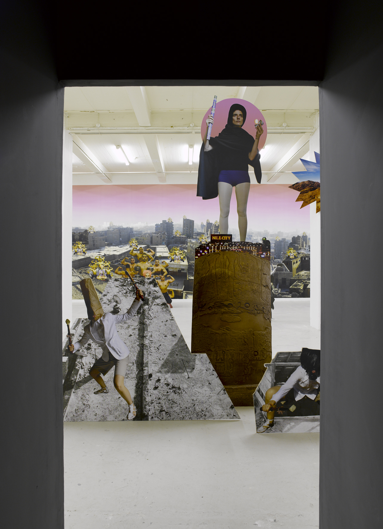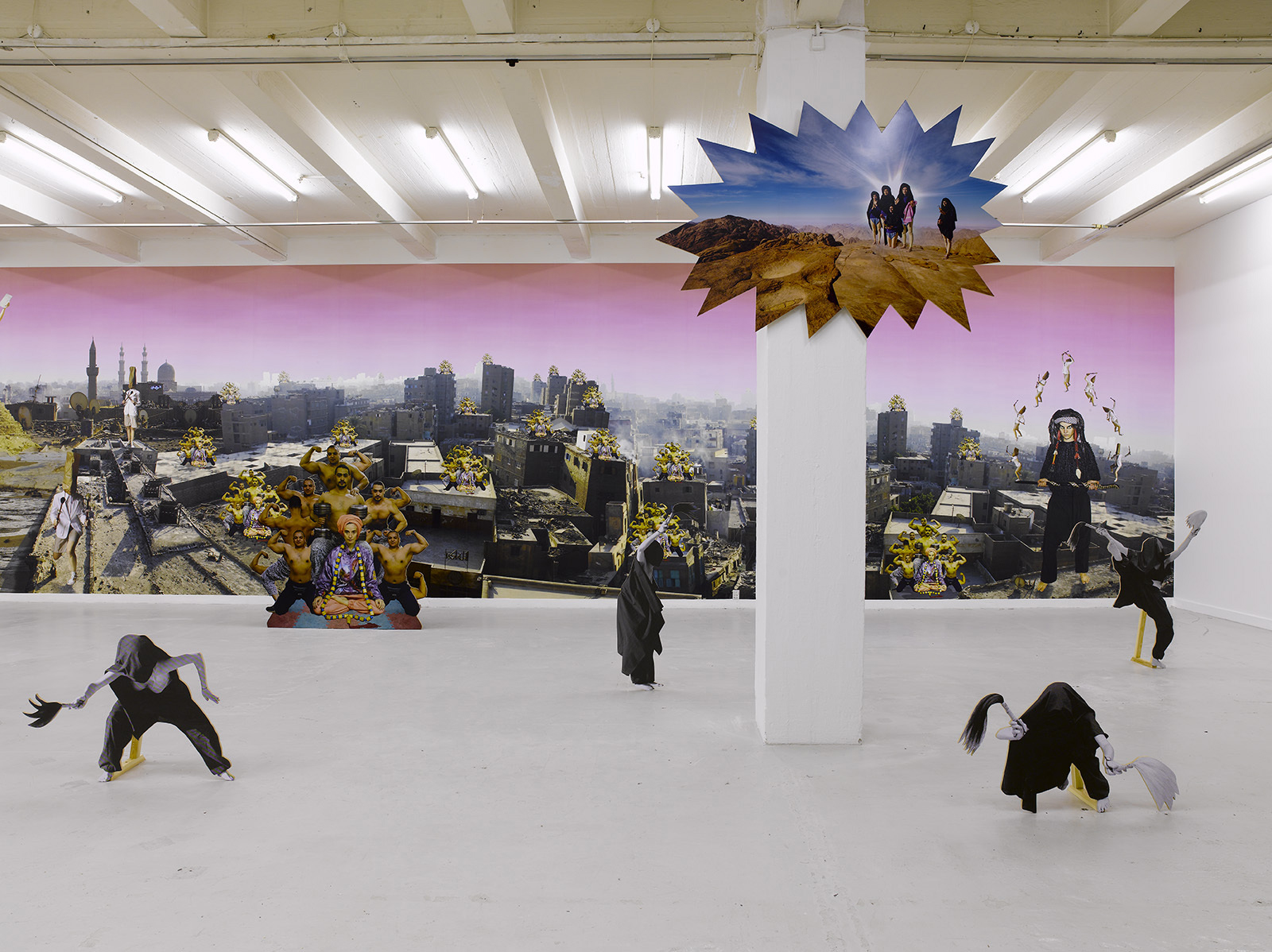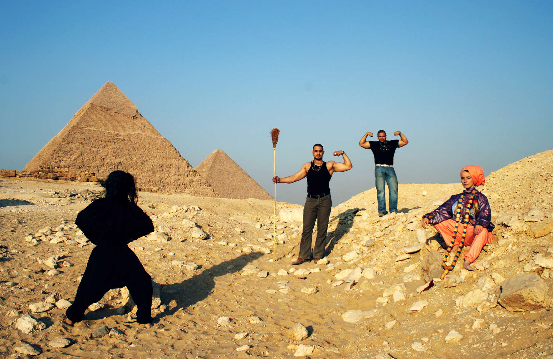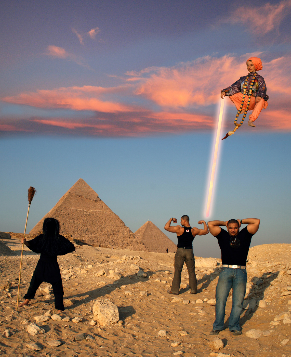 Der Hintergrund ist real genug, obwohl die Künstlerinnen ihr eigenes selbsterdachtes Ägypten kreieren und sich dabei an den Vorhersagen der New-Age-Religionen und zukünftigen Weltordnungen orientieren… wo ehemalige Kolonisten gefangen sind in touristischen Resourts und Propheten sich mit afrikanischen Hexen treffen und Hip-Hopper aus Kairo, sogar Ninjas und die Freiheitsstatue in der finalen 3D-Kollage auftauchen.