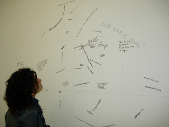 auf der Wand. Er besteht aus kleinen Textstücken, die entlang