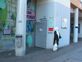 A rather elusive space, that regularly changes its name and site in order to remain so, but not desiring exclusivity it seems, more so because of a few issues with the legality of the space. This is a collective of 4 artist/musicians who simply love Kreuzberg, they said, and so occupy spaces and put on exhibitions and parties. They recently went by the name Clinic, an ode to the old x-ray rooms of the doctor’s surgery below, which used to occupy this site. Their first exhibition here involved dismantling the interior x-ray cubicles, neon lighting and internal structure of the clinic and creating installations from the material. The space now looks like the excavated skeleton, funny cubic floor tracings of once walls, still partially tiled in white, dismantled, ready to be reworked. I visited between exhibitions, and it felt unprecious eager, awaiting the next stage of destruction/restructure. Which happens with each exhibition shown, band performed,party had. And it all moves via word-of-mouth and an extensive mailing list, having no website, phone number, or fixed address.