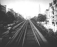 rec die verwendung von found footage material im bereich von kunst- und experimentalfilm ist eine häufig angewandte arbeitsmethode. dabei wird bereits existierendes filmmaterial bearbeitet und einer neuen inhaltlichen und/oder formalen bedeutung zugeführt. unabdingbar für diese arbeitsweise ist das vorhandensein und die zugriffsmöglichkeit auf das ausgangsmaterial. bei der verwendung von filmen, deren entstehung sehr lange zurückliegt, ist der zugriff auf das ursprungsmaterial oft schwierig. in manchen fällen besteht nur noch ein exemplar des films, oder manchmal bestehen sogar nur noch einzelne kader. anhand dieser einzelaufnahmen kann zwar festgestellt werden, dass ein film existierte, der film selbst besteht jedoch nicht mehr. berlin:schönhauser geht von dieser situation aus und bezieht sich auf material der berliner filmpioniere max und emil skladanowsky aus dem jahr 1896, welches nur noch in form von einzelbildern vorhanden ist. ähnlich wie bei found footage arbeiten dienen diese aufnahmen als ausgangpunkt einer filmischen arbeit, die sich, und das ist der unterschied zum herkömmlichen footage film, rein ideell auf filmmaterial bezieht, ohne das material direkt weil es nicht mehr existiert zu verwenden. aufnahmen von schienen, von zügen oder aus fahrenden zügen heraus sind häufig wiederkehrende motive gerade des frühen films. als archetypisch für die filmgeschichte sind die aufnahmen der brüder lumière vom einfahrenden zug (arrivée d'un train à la ciotat, 1895) anzusehen. kurze zeit danach drehen die brüder skladanowsky in berlin eine fast identische szene (einfahrt eines eisenbahnzuges, 1896). gewissermaßen ganz am anfang also der filmgeschichte kommt es zum ästhetischen zusammenschluß von bahn und film, wie auch weitere arbeiten von skladanowsky belegen (z.b. eine hochbahnfahrt durch berlin, 1896). möglicherweise steckt darin schon die ahnung einer identität, wie sie der damals sehr neuen form von technik (filmprojektor, filmkamera) und dem paradebeispiel technischer revolution der dampfmaschine (lokomotive) zugrunde liegt. jedenfalls bedienen sich beide techniken einer methode, die am betrachter/passagier ein bild im fahrenden zug die landschaft, im film die filmkader vorbeiziehen läßt. dec bei der ersten vorführung des lumière films vom einfahrenden zug sollen die besucher vor entsetzen den vorführraum verlassen haben. ähnliches könnte sich bei der präsentation des skladanowsky materials ereignet haben. jedenfalls erzeugte das bewegte bild für die betrachter von damals den effekt eines wahrnehmungsschocks. wenn gleich offen steht, ob die zuschauer vor einer vermeintlichen wirklichkeit oder vor der bis dahin nie dagewesenen attraktion einer bewegungsillusion zurückgeschreckt waren, fest steht, mit dem bild vom einfahrenden zug ist eine völlig neue darstellungsqualität aufgetreten, ins 20. Jahrhundert "eingefahren". |
