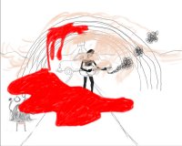 soda on a bar, writing a horse with two masks, dancing to the ghettoblaster