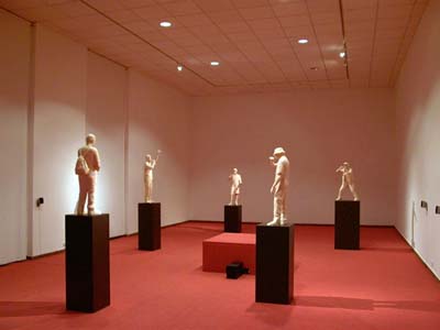 of the MC's are separeted to the five speakers, the sculptures are standing