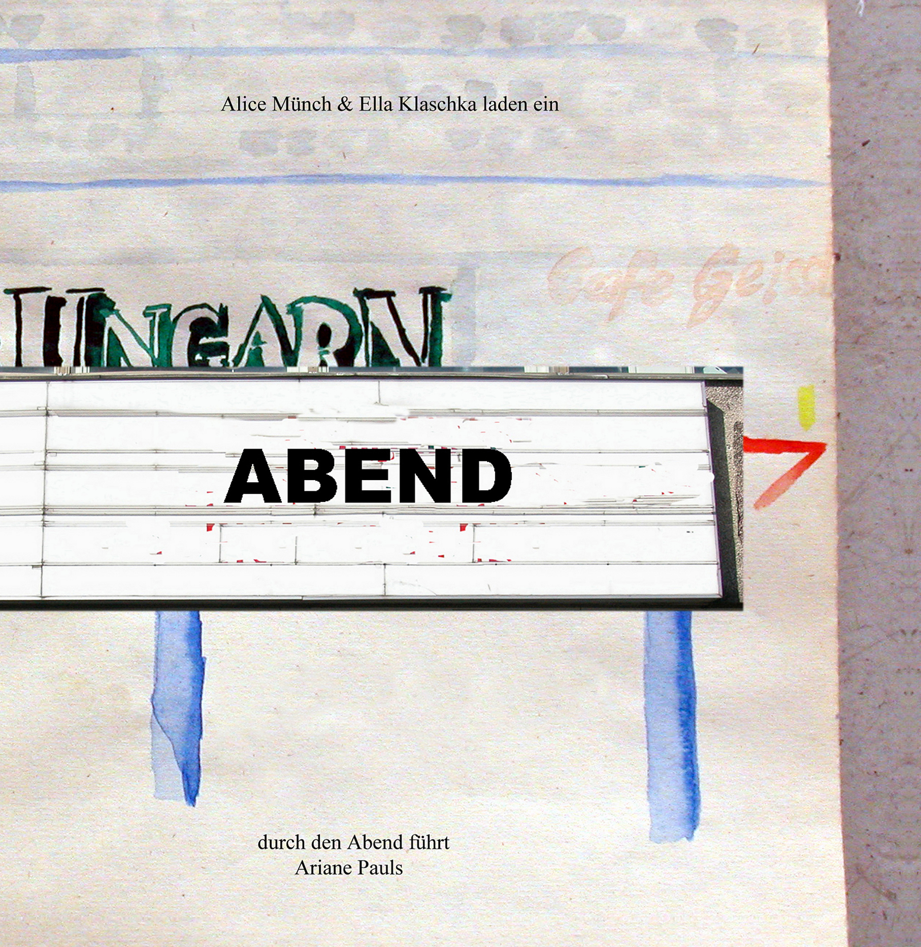 Alice Münch & Ella Klaschka laden ein zum KINO ABEND (many small acts by many participants. Durch den Abend fŸhrt Ariane Pauls.