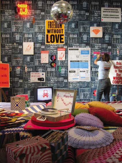 For The Year of Perfect Days, our exhibition for Sparwasser HQ, Berlin, Instant Coffee will conduct a series of event-based activities. The Instant Coffee sculptural environment will be the platform for a series of events; for example, a stencil cut out party, a slide show, an Instant Coffee power point lecture, a self dee-jay night, and the stage for a series of exchanges that will take place over the course of the exhibition.
