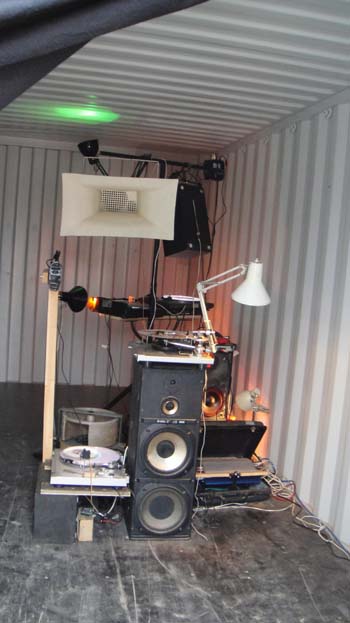 While beeing artist-in-resicence Camilla was part of Sparwasser HQ's participation in the festival Subvision in Hamburg. There Vinyl -Terror & -Horror created an installation for the container, a machinery of old record players, beautifully served by invisibly hands. 8 newly produced records were speeding up an down, record player pick-up arms were lifting and lading on front and back side of floating vinyls. During this concert of scratch, flying sand, container and the sentimentality of old mould were toned down by the beauty of ghosty perfection.